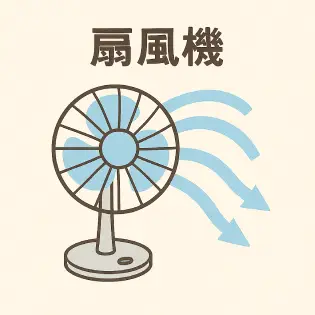 • 扇風機は 人に当てるための風