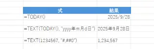 年月日(スラッシュ) | "yyyy/mm/dd" | 2025/09/28 | スラッシュ区切りで表示 |